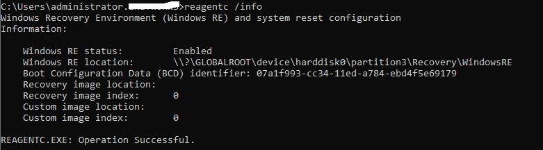 reagentc /setreimage /path C:\Windows\System32\Recovery