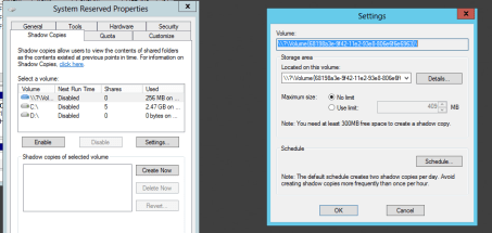 Cause: Even though we increase the system reserved partition size , under System reserved partition properties (in Disk Management , Right Click on System reserved partition and select Properties) we were able to see that, the maximum limit has not been updated in the Shadow copies Tab , and it was showing the old value only.