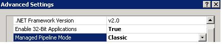 * Select the required Application Pool -> Change the Manage Pipeline Mode to Classic as below