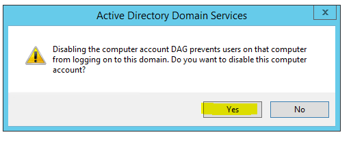 2) Disable the Computer Account created above and Press ” Yes” on the Prompt.