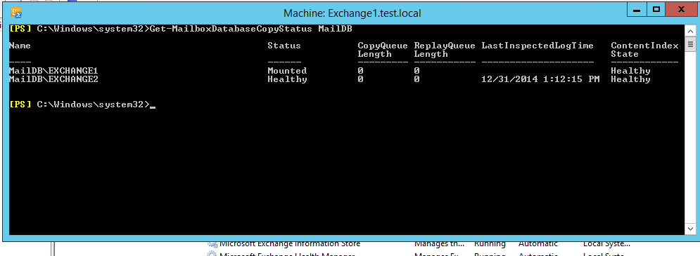 12) Verify the Database Copy Status and repeat the steps for the other databases.